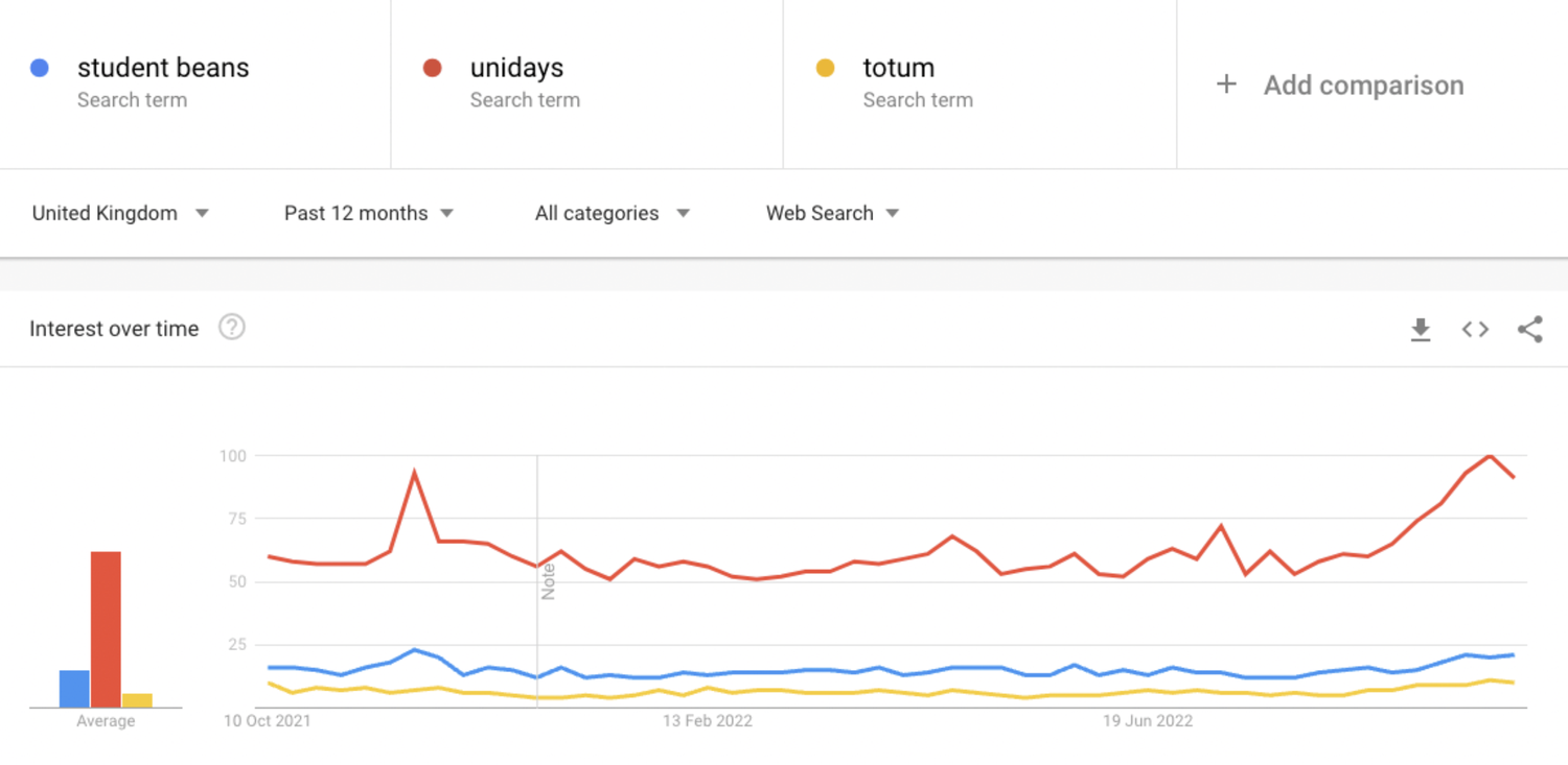 Comme le montre le graphique Google Trends ci-dessous, la notoriété de la marque a connu un déclin annuel depuis 2017. Les pics, entre les lignes rouges, correspondent aux périodes de pointe de la marque : les périodes de rentrée universitaire et le Black Friday.